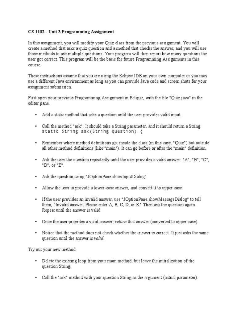 CS1102 Unit 3 Programming Assignment Answer - CS 1102 Unit 3 ...