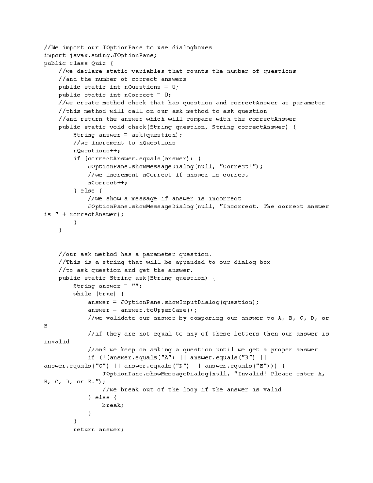 CS 1102 - Programming Assignment Unit 2 - swing; public class Quiz ...