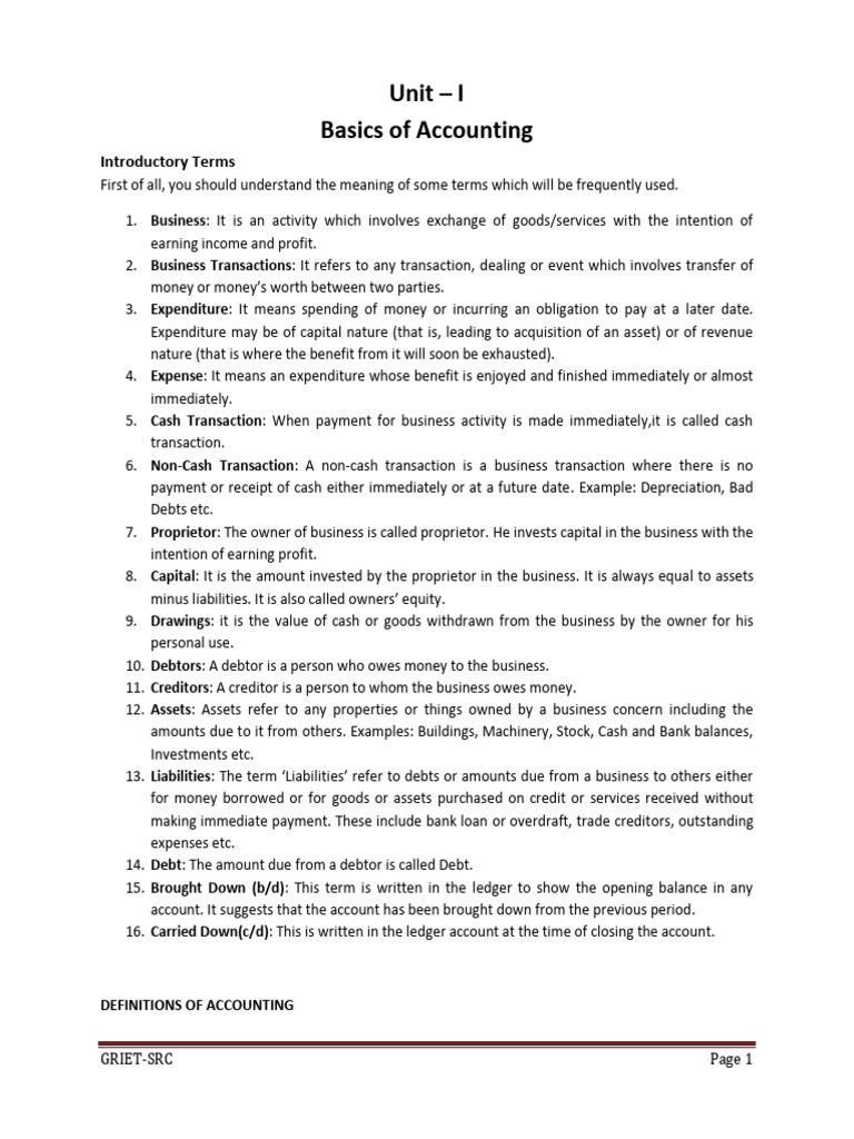 Unit I Basics of Accounting | PDF | Debits And Credits | Expense