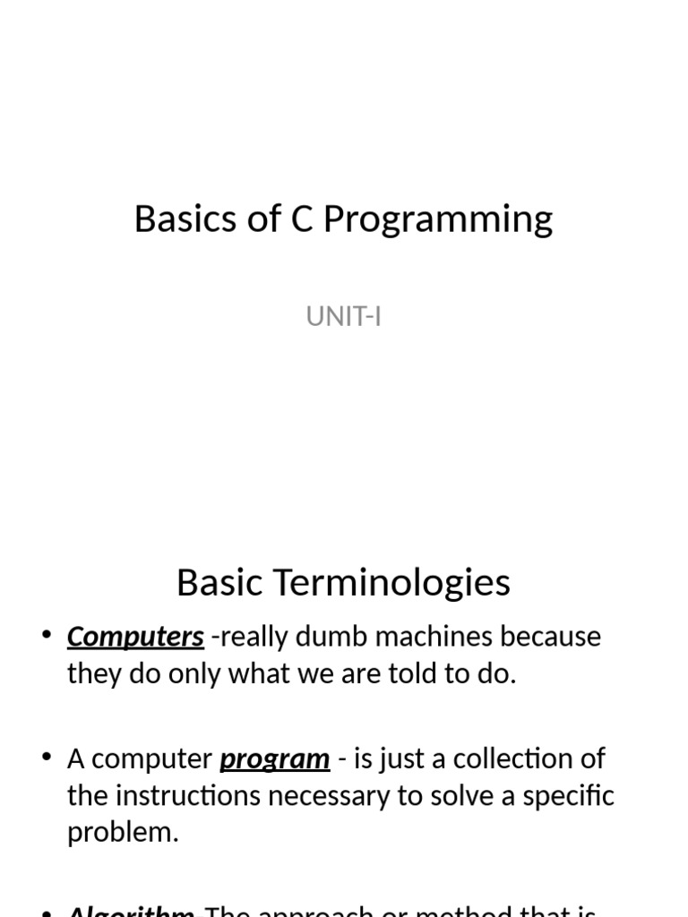 Unit I Basics of C Programming | PDF | Programming | Computer Program