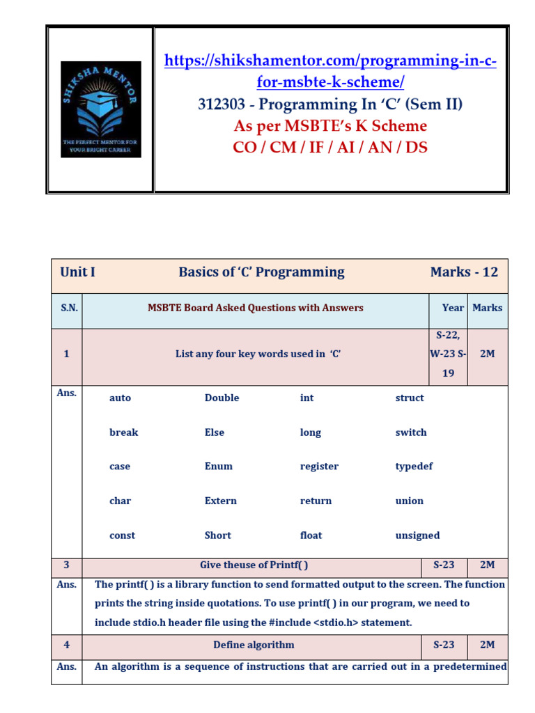 QA UNIT I Basics of C Programming | PDF | Data Type | C (Programming ...