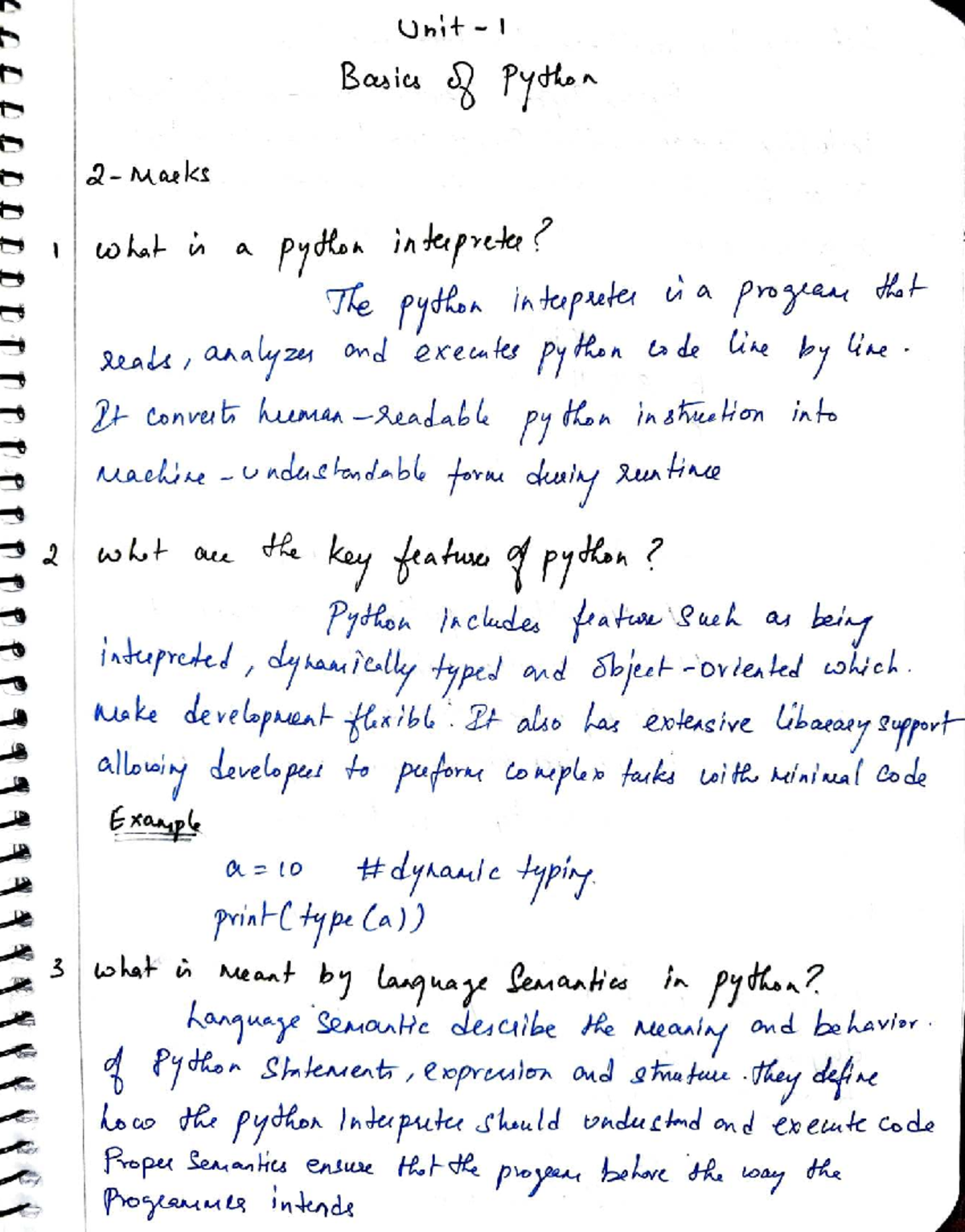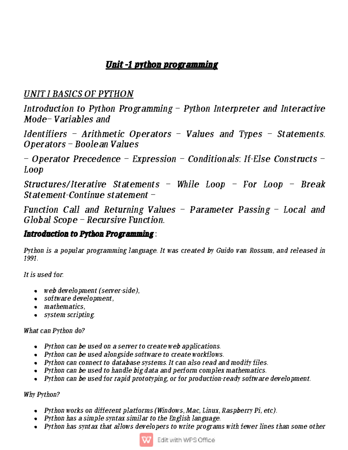 Unit 1 - Basics of Python Programming and Features Overview - Studocu