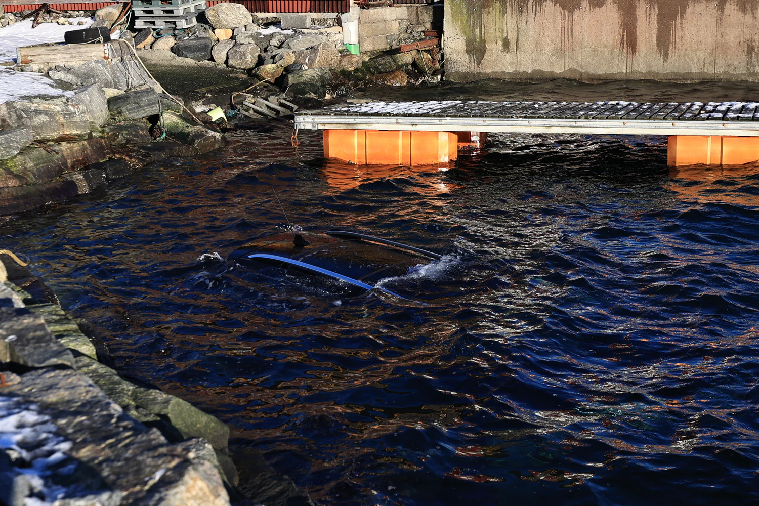 Bil i sjøen i Eidsvåg i Bergen