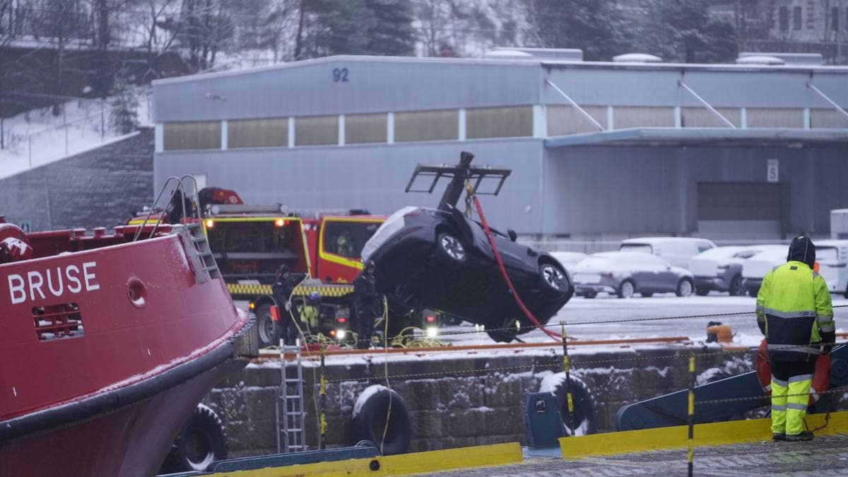 Bil havnet i sjøen ved fergeleie – én hentet opp av vannet - TV 2