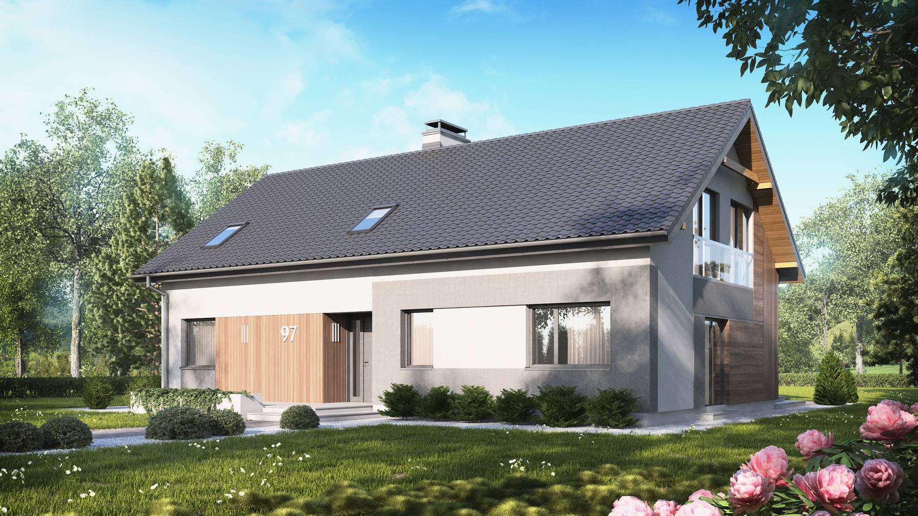 Wizualizacja architektoniczna – dom dwupiętrowy dwuspadowy z ...