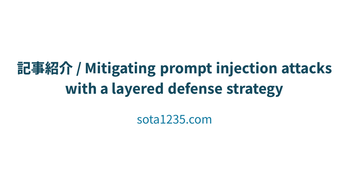 記事紹介 / Mitigating prompt injection attacks with a layered defense strategy