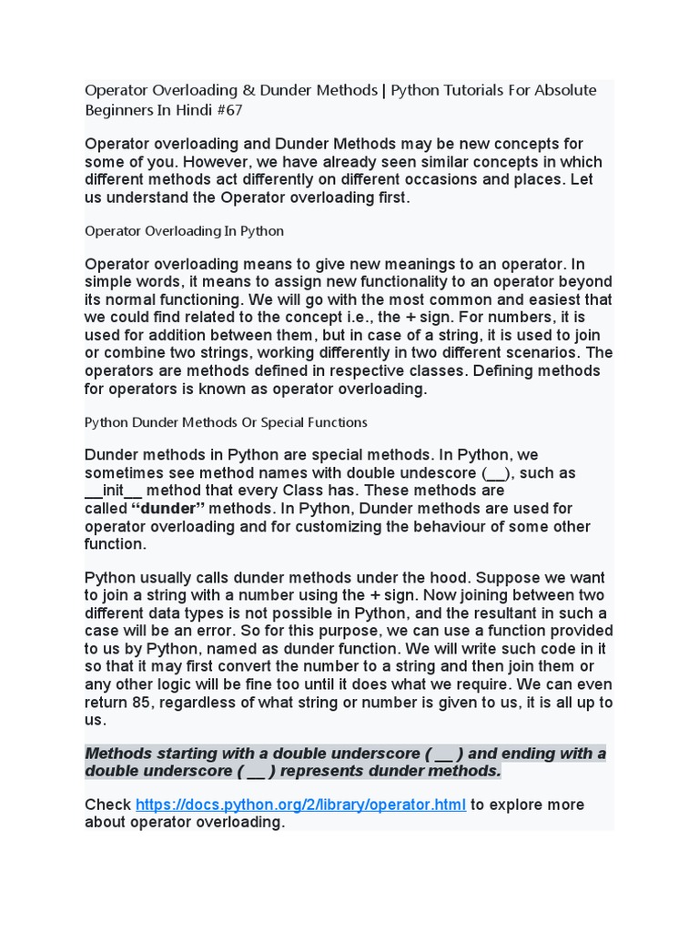 Operator Overloading & Dunder Methods - Python Tutorials For Absolute ...