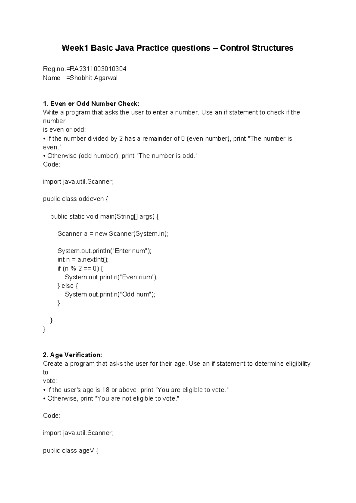 Week 1 Java Practice Questions: Control Structures & Solutions - Studocu