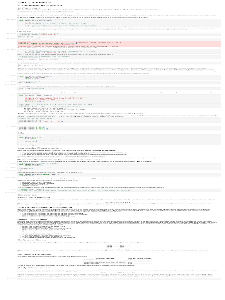 (Lab Manual - 2) Functions in Python | PDF | Parameter (Computer ...