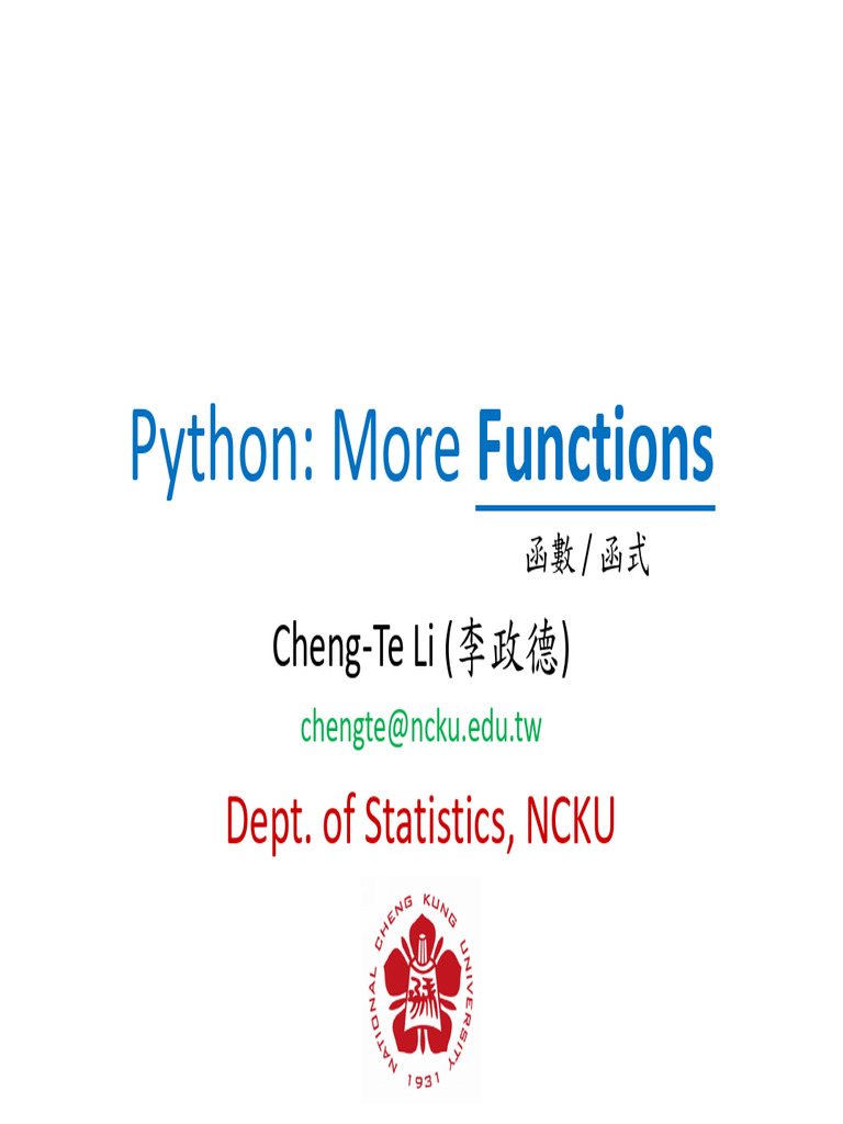 Python Lecture 11 More Function | PDF | Parameter (Computer Programming ...