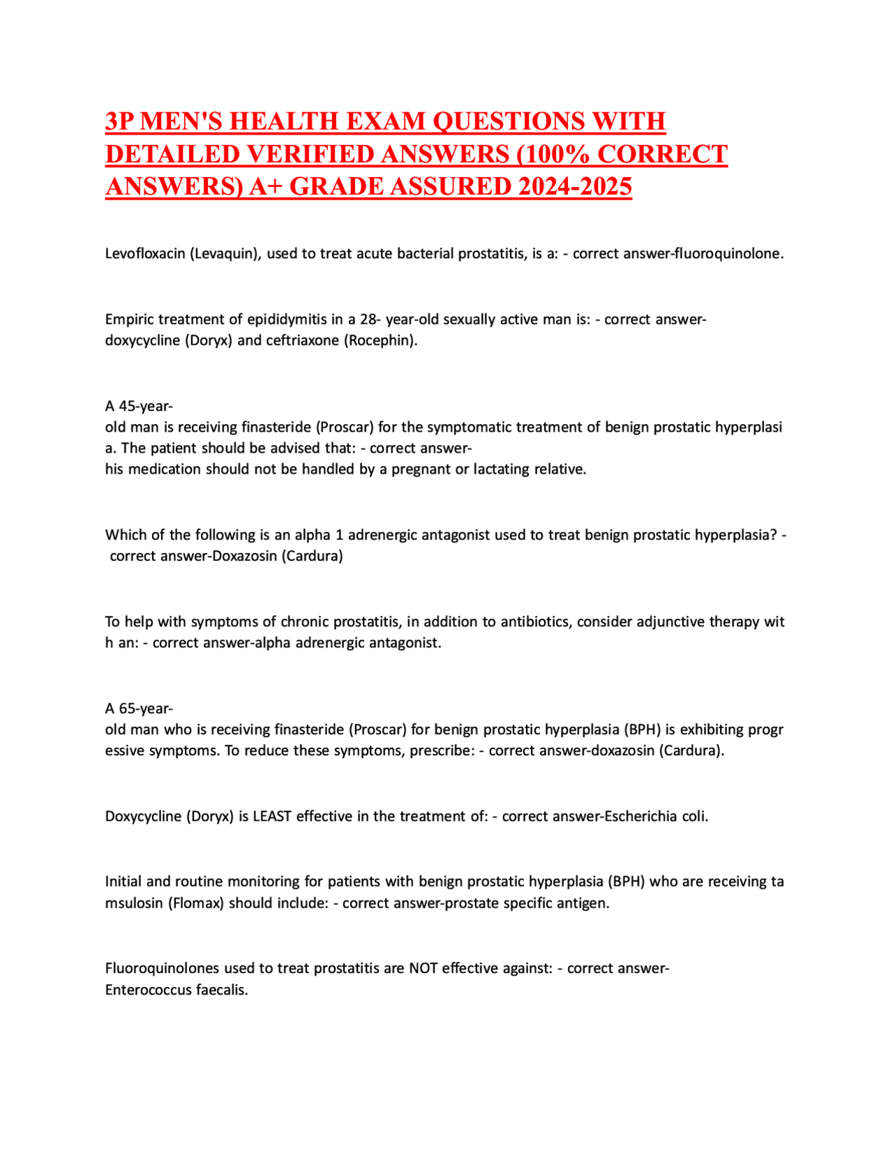 3P MEN_S HEALTH EXAM QUESTIONS WITH DET...NSWERS) A+ GRADE ASSURED 2024 ...