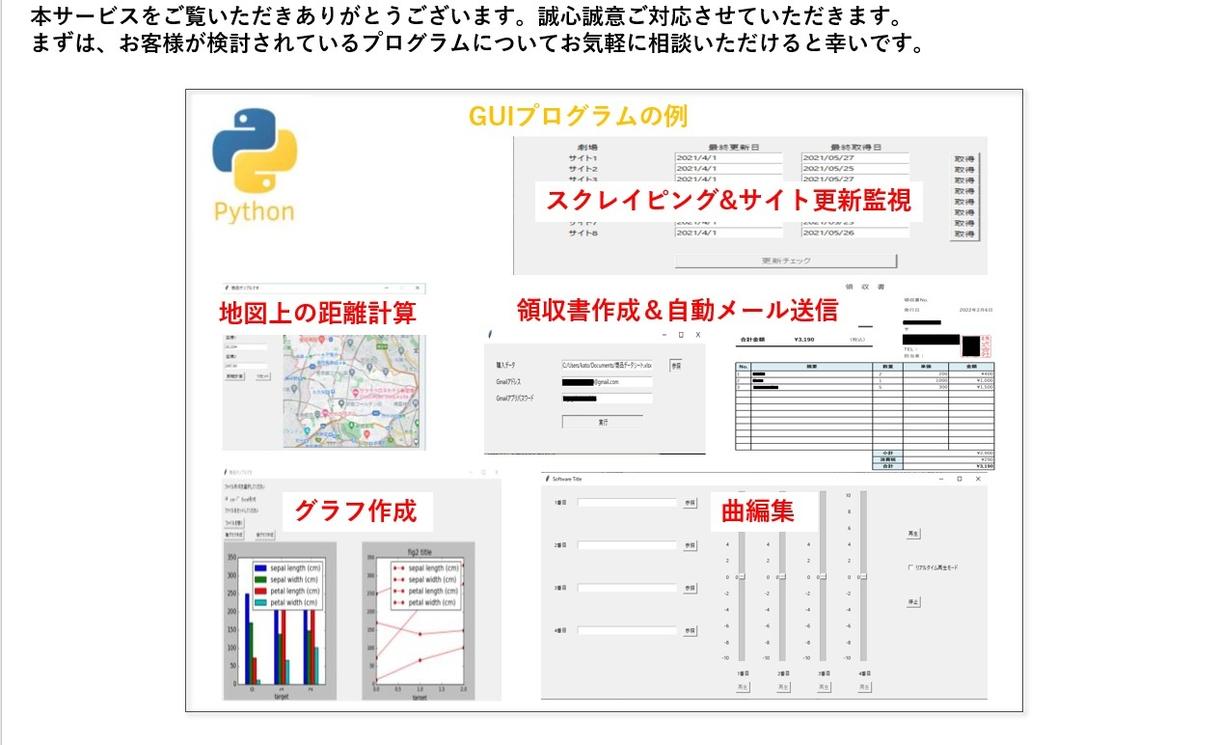 PythonでGUI付き等プログラム開発します 大手メーカーSEがAIを用いた自動化・効率化を提供します
