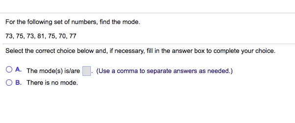 Solved For the following set of numbers, find the mode 73, | Chegg.com