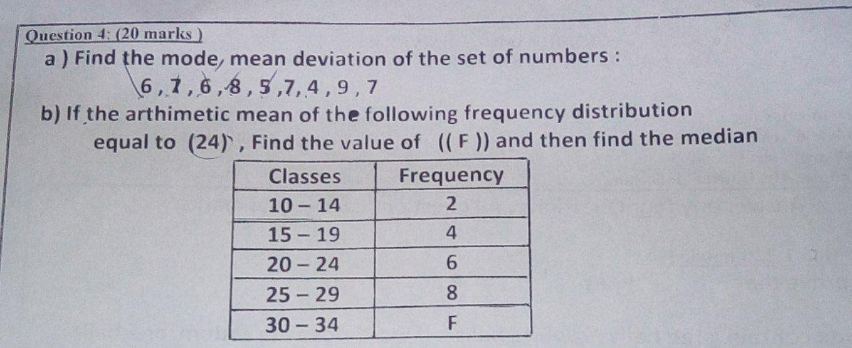 Solved Question 4: (20 marks) a) Find the mode, mean | Chegg.com