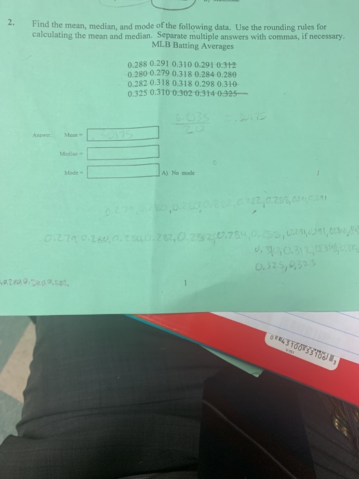 Solved 2. Find the mean, median, and mode of the following | Chegg.com
