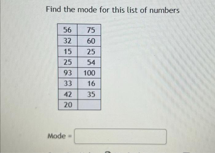 Solved Find the mode for this list of numbers Mode = | Chegg.com