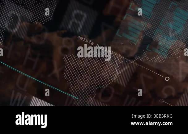 Floating alphanumeric layer initiating dotted world map building and ...