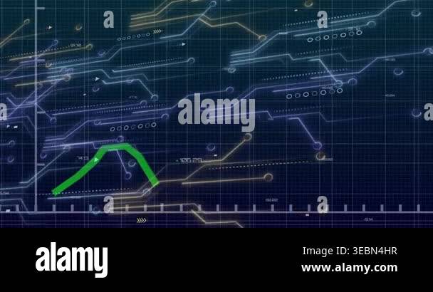 Green polyline emerging lower left extending right oscillating on grid ...