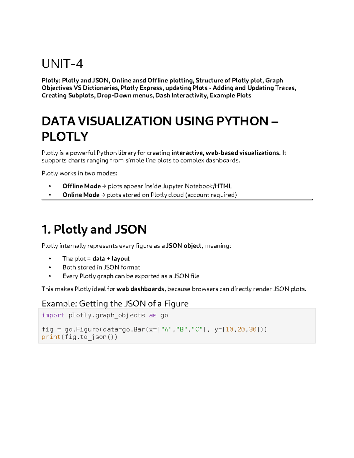 UNIT-4: Data Visualization Using Python with Plotly Techniques - Studocu