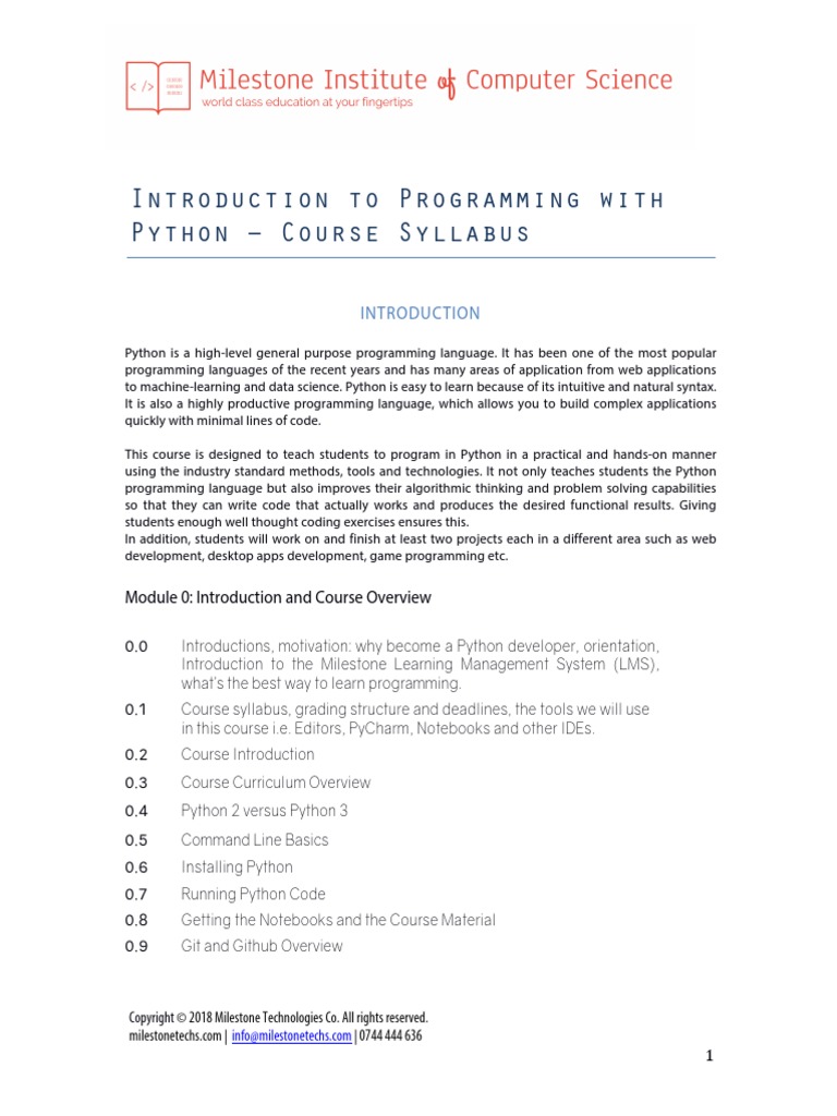 Introduction To Programming With Python - Course Syllabus | PDF ...