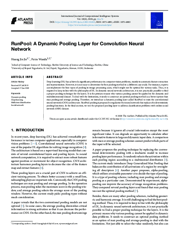 (PDF) RunPool: A Dynamic Pooling Layer for Convolution Neural Network