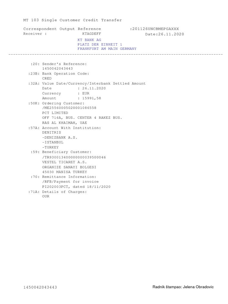 Document mt103 | PDF