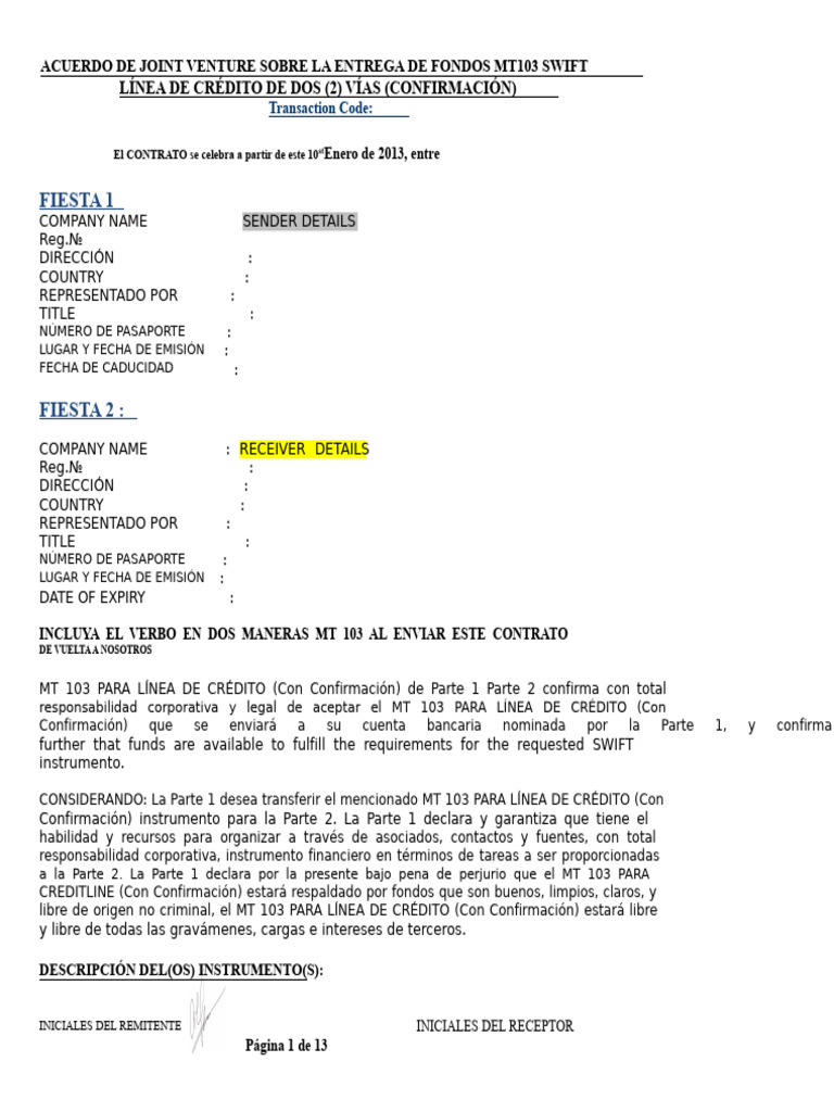 MT103 2 Vía10 BI Contrato10.01.2013 | PDF | Transferencia bancaria | Bancos
