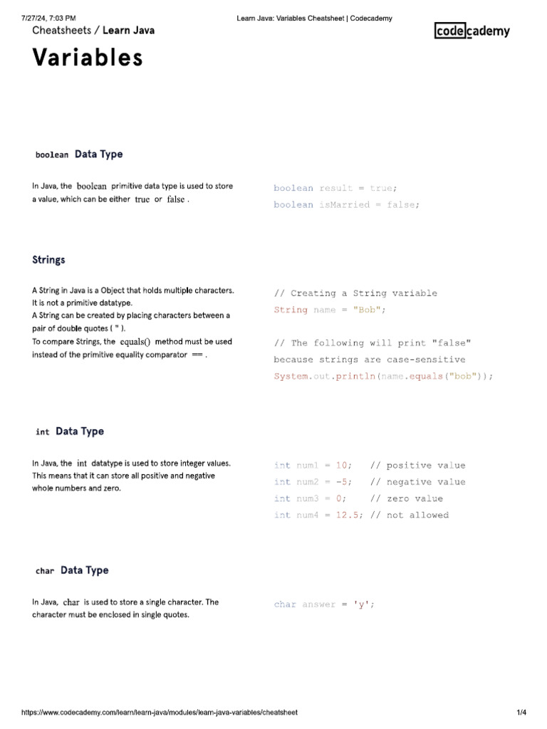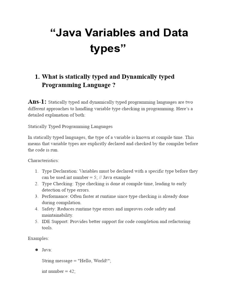 Java Variables and Data Types Guide | PDF | Variable (Computer Science ...