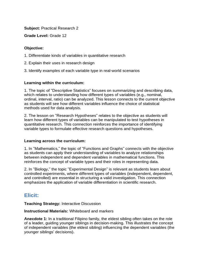Lesson - Plan Variables in Quanti | PDF | Statistics | Experiment