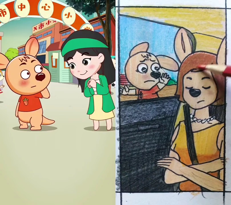 看动画学画袋鼠比比#搞笑动画 #简笔画 #动画 #画画 #手绘