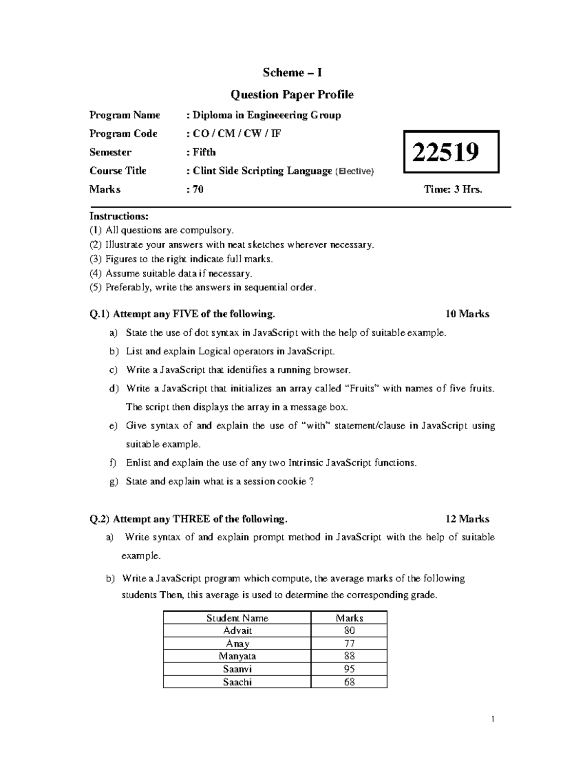 22519 clint side scripting language elective - Question Paper Profile ...
