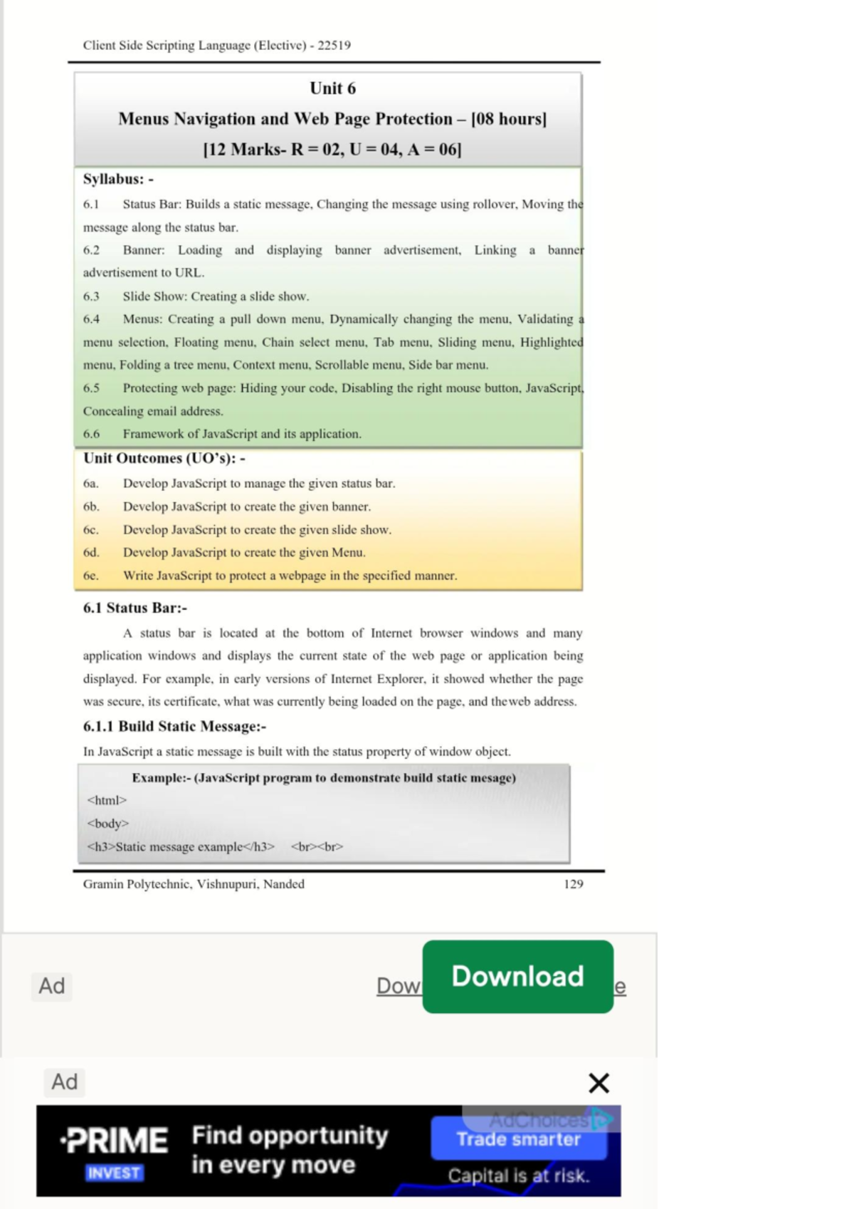 Client Side Scripting Language for MSBTE I Scheme (V - CO/CM/CW - 22519 ...