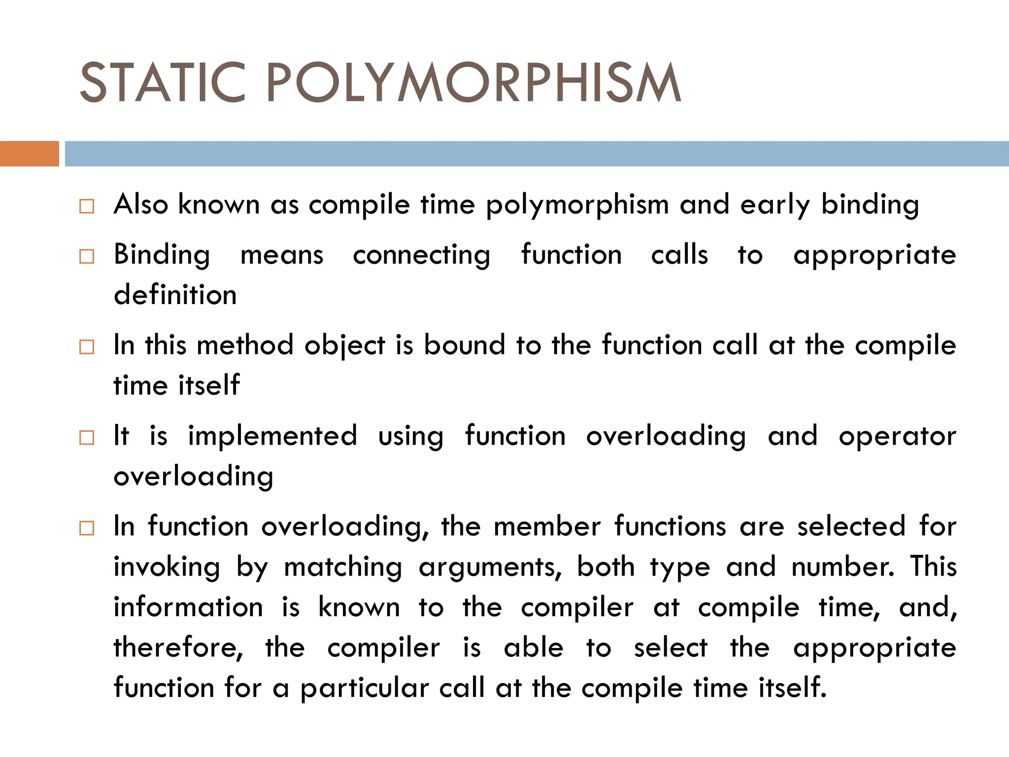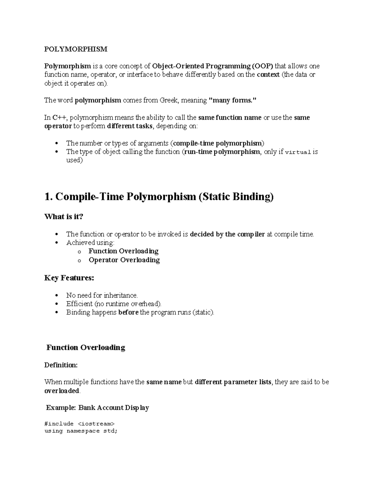 POLYMORPHISM - OOP LECTURE NOTES on Function Overloading & Binding ...