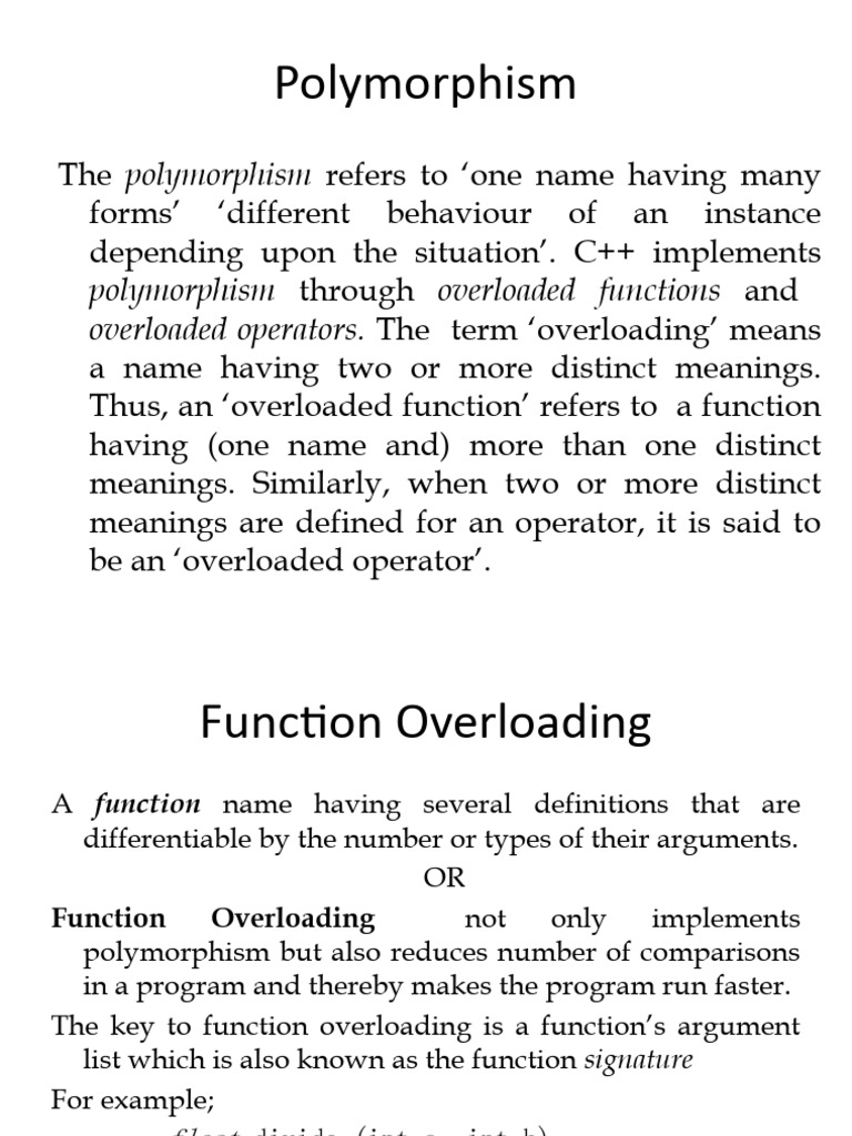 Polymorphism: Operator Overloading and Function Overloading | PDF ...