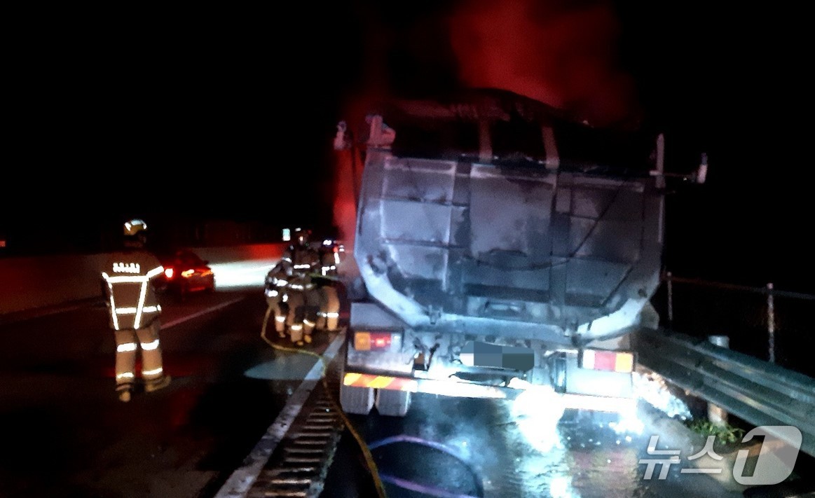상주영천고속도로 달리던 25톤 덤프트럭에 불…40분 만에 진화