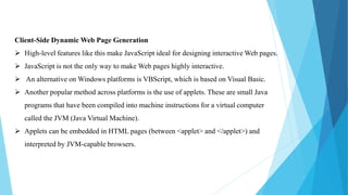 Client-Side Scripting Concepts: JavaScript Overview and Applications ...