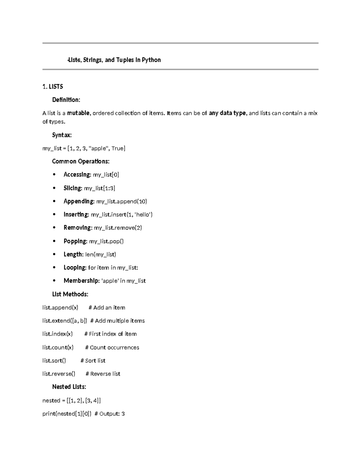 UNIT-III: Python Notes on Lists, Strings, and Tuples - Studocu