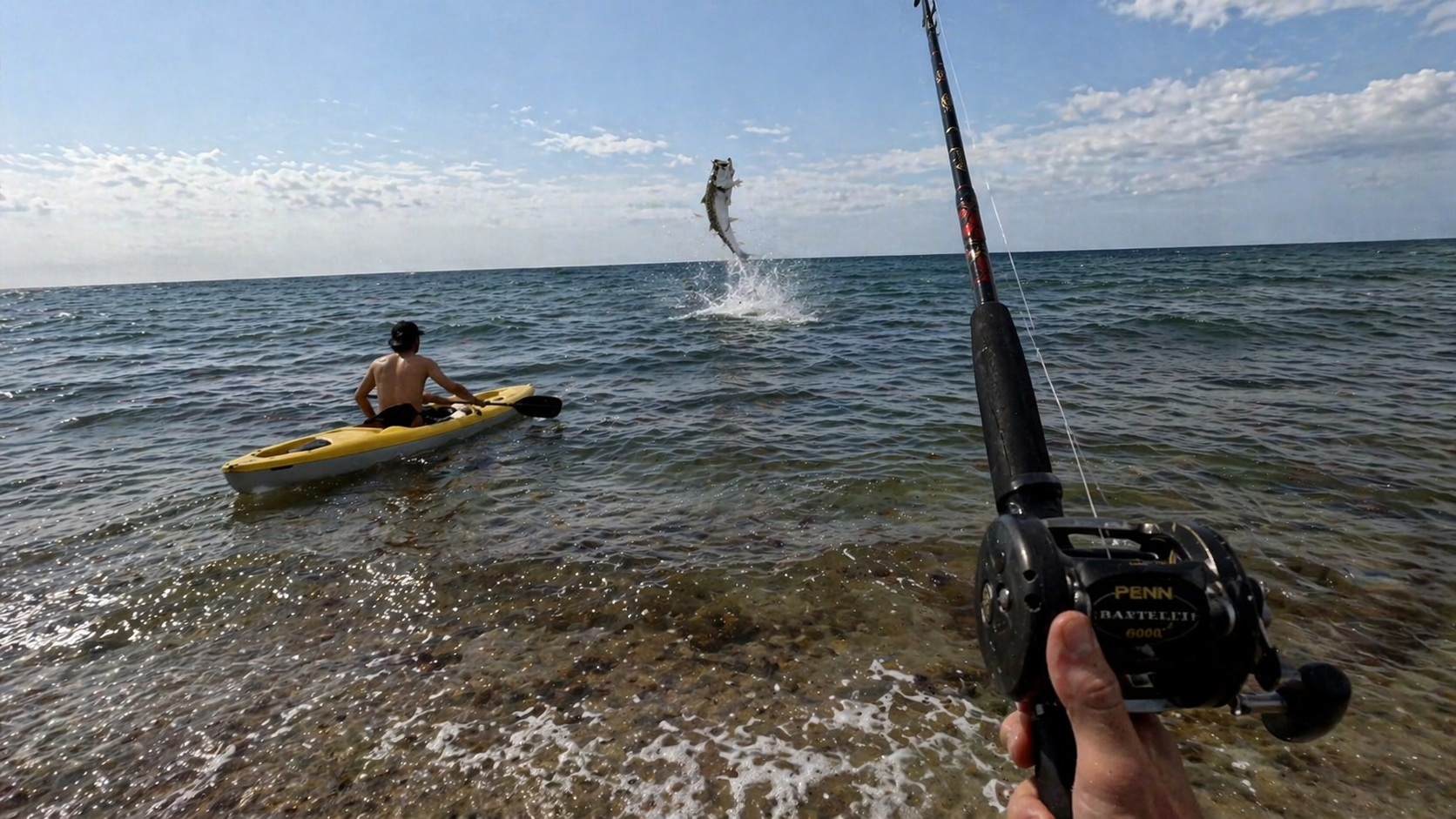He thought it was a shark until this monster showed up, caught on camera