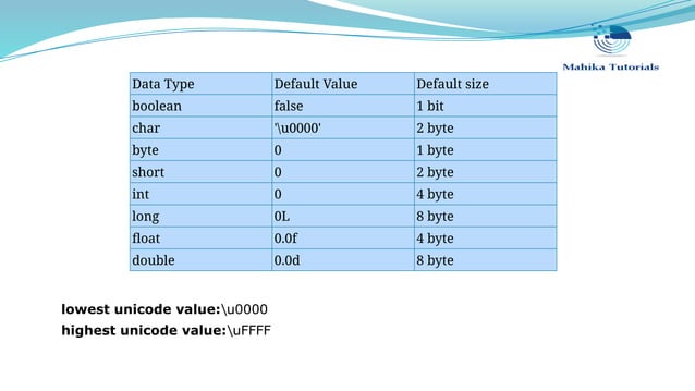 Based on this image's title: “Core Java Tutorials by Mahika Tutorials | PPT”