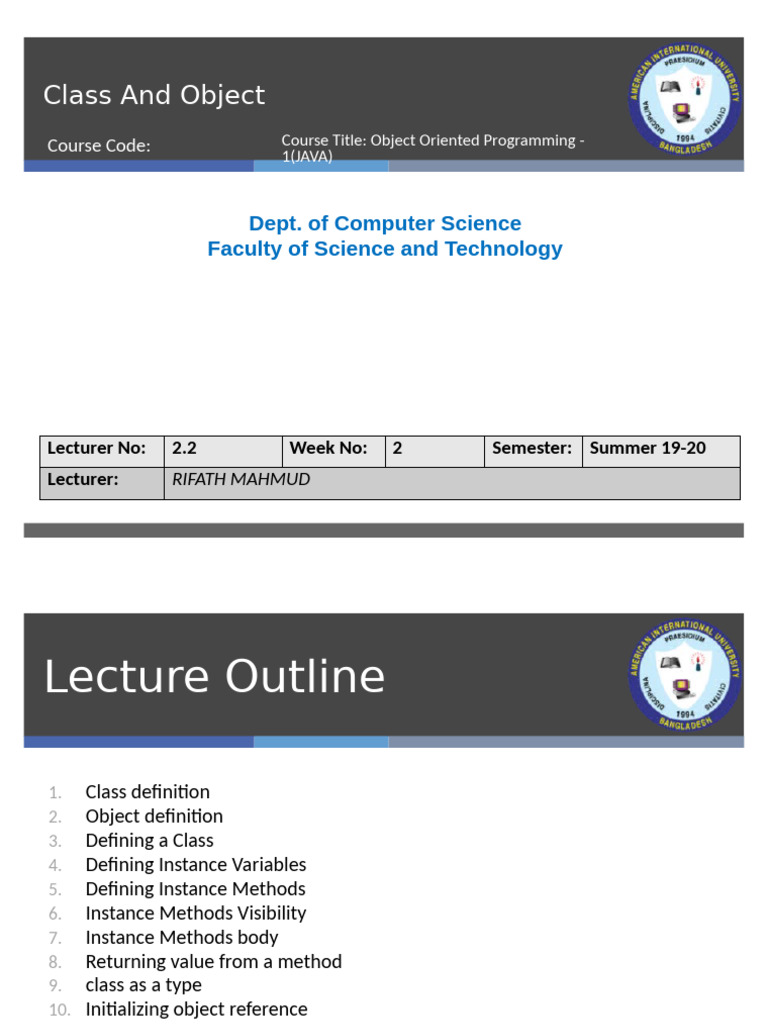 Lecture 2.2 - Class and Object | PDF | Programming | Constructor ...
