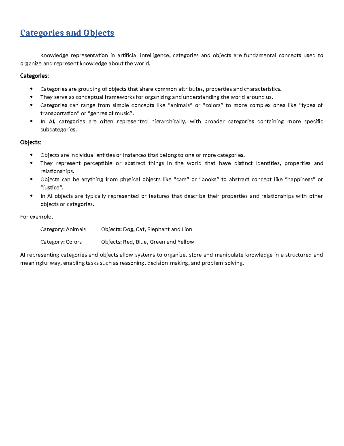 AI Knowledge Representation: Categories and Objects Explained - Studocu