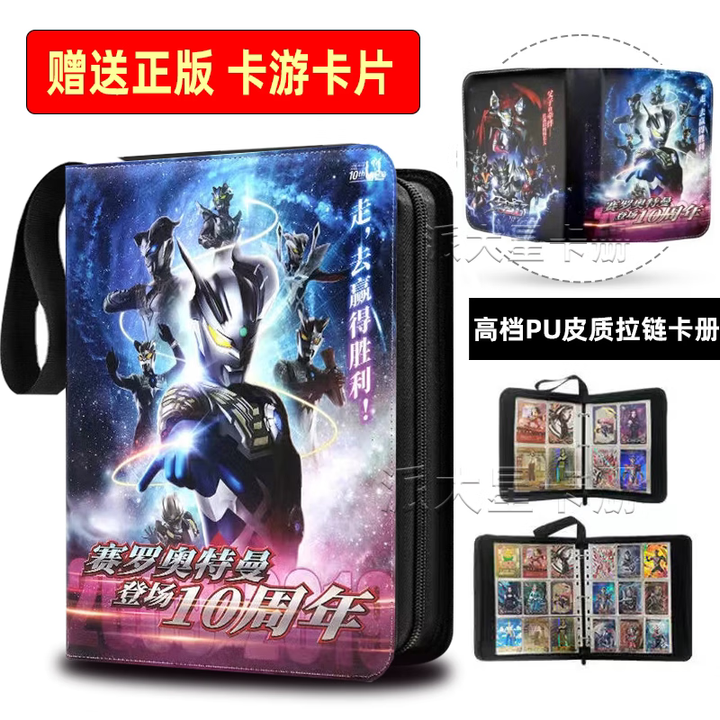 何健弓新奥特曼卡册卡片收集册卡牌收藏册卡包儿童礼物大容量皮质带拉炼 赛罗奥特曼10周年 黑色内页(9格50页900卡位)【图片 价格 品牌 ...