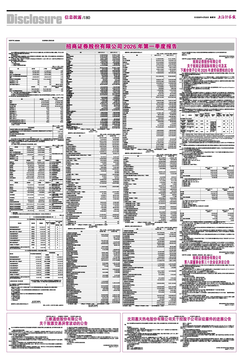 招商证券股份有限公司2026年第一季度报告|上海证券报