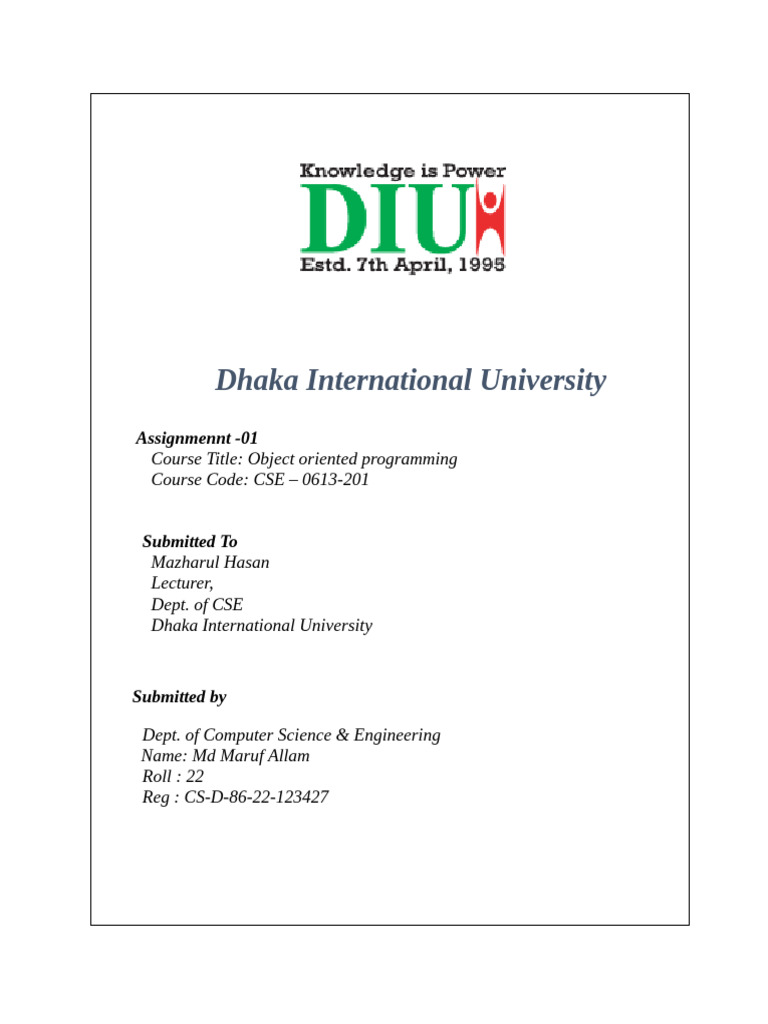 OOP Assignment 1 | PDF | Computer Programming | Computer Program