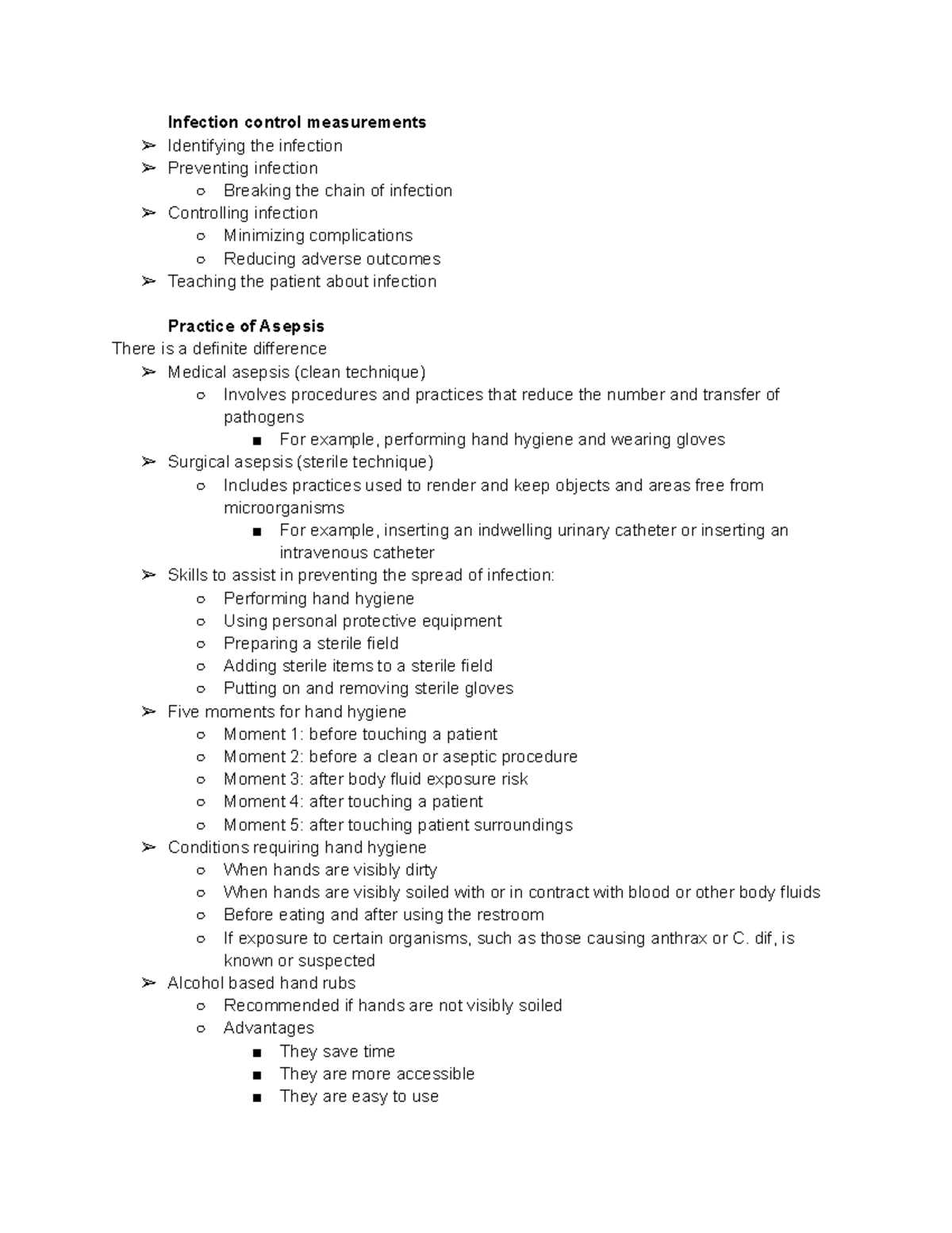 Skills lab week 1 - helpful notes - Infection control measurements ...