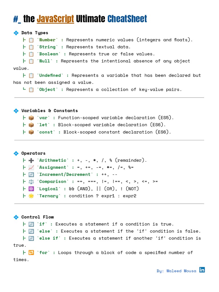 javascript cheatsheet | PDF | Java Script | Control Flow