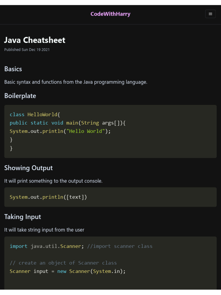 Java Cheat Sheet Pdf Java Cheat Sheets Pdf: 20 Useful One That Every