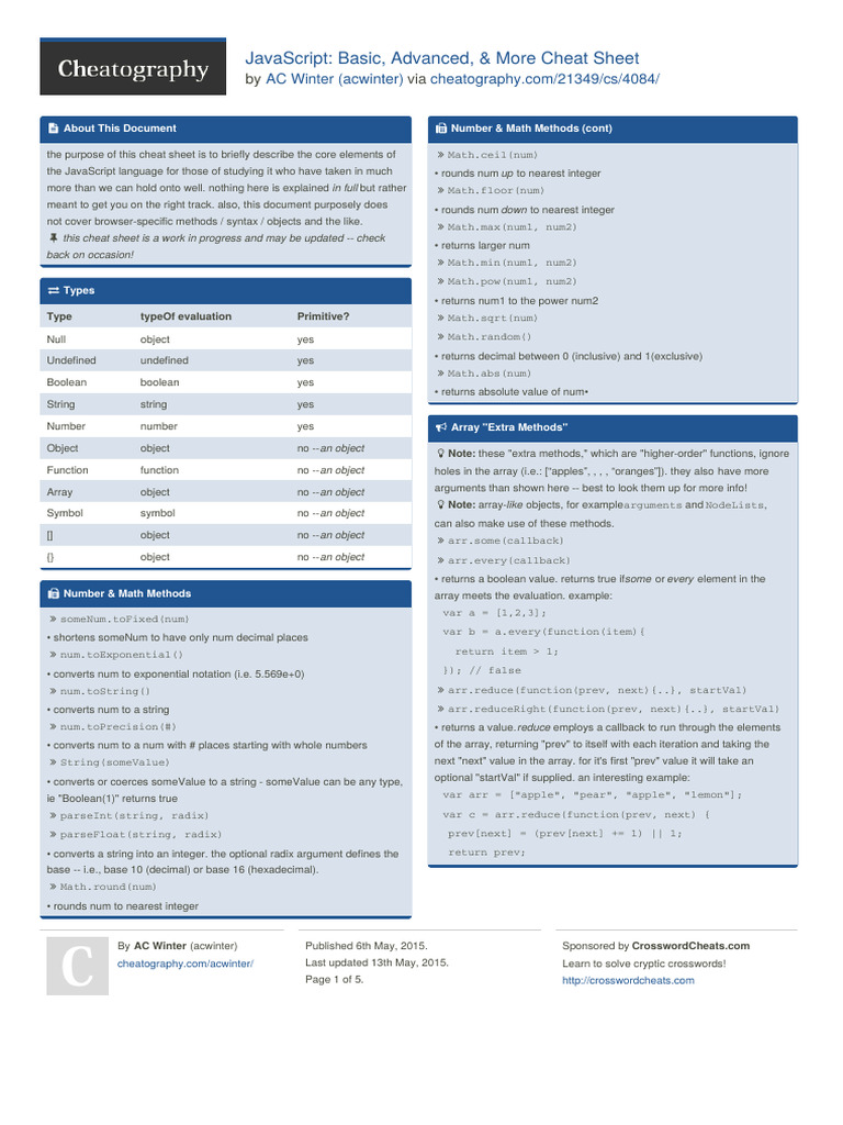 The JavaScript Cheatsheet | PDF | Java Script | Computer Programming