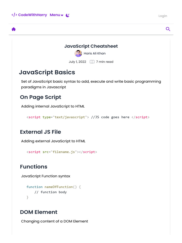 JavaScript Cheatsheet | PDF | Java Script | Document Object Model