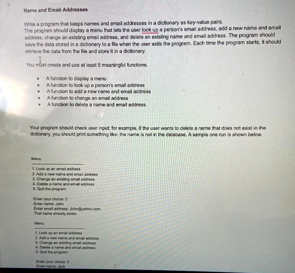 Solved Name and Email Addresses Write a program that keeps | Chegg.com